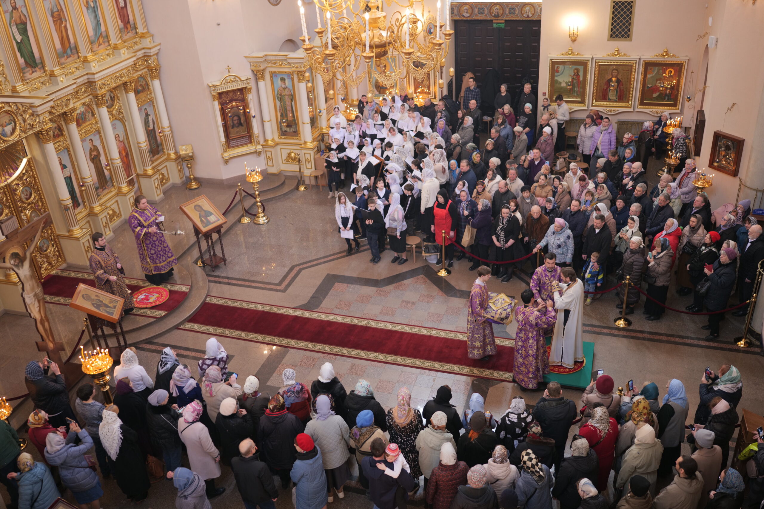 За богослужением пел детский хор Западного Викариатства г. Москвы и правый хор под управлением регента В. А. Исаева.